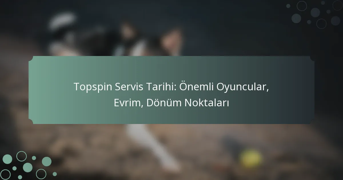 Topspin servisi, yıllar içinde önemli ölçüde evrim geçirmiştir ve bu süreçte dikkate değer oyuncular ve dönüm noktası maçlar, gelişimini şekillendirmiştir. Anahtar dönüm noktaları, raket teknolojisindeki gelişmeler ve servis tekniklerinin rafine edilmesi gibi unsurları içermektedir, bu da modern tenis stratejilerini etkilemiştir.